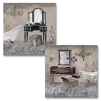 Gango Home Decor S Bathroom Collection Gray Brown And Black French Vanity Mirror And Powder Room Art By Greg Gorham 2 12x12 Unframed Paper